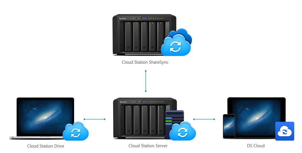 藉由豐富的云端解決方案,DS416 讓你輕松建立個(gè)人云端。Cloud Station 是高效的套件,讓你在不同裝置間同步檔案,同時(shí)具有更高的安全性。你可以離線編輯檔案,完成后再同步至 Cloud Station。每個(gè)檔案皆可存放高達(dá) 32 個(gè)版本,使你能將檔案回復(fù)到過(guò)去的時(shí)間點(diǎn)。透過(guò)行動(dòng) app DS cloud,所有檔案更新都將自動(dòng)同步到你的智能手機(jī)和平板電腦。針對(duì)分布式企業(yè),Synology 可讓兩臺(tái) DiskStation 進(jìn)行雙向同步,讓不同地點(diǎn)的員工仍可以實(shí)時(shí)分享相同的檔案。此外,IT 人員還可以手動(dòng)挑選想要同步到不同裝置上的文件夾,或自動(dòng)根據(jù)文件格式、大小等標(biāo)準(zhǔn)來(lái)篩選。Cloud Station 同步的文件夾可在服務(wù)器端由 DSM 加密,沒(méi)有你的密碼,別人無(wú)法存取其內(nèi)容。