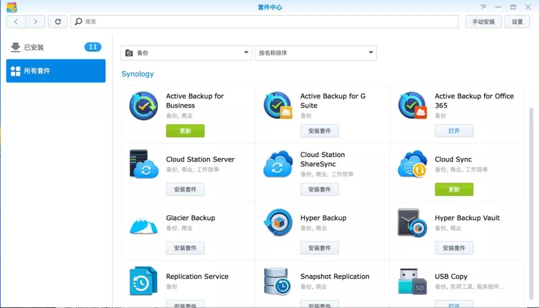 這些備份套件都可以在群暉套件中心免費(fèi)下載: