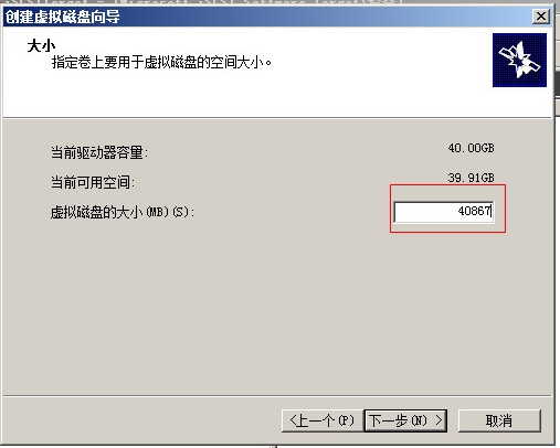 輸入虛擬磁盤容量大小,然后下一步